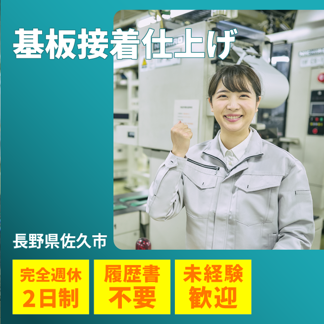 給与詳細 月収例 220,935円 時給例 1,133円 勤務地 長野県佐久市 仕事内容 電子部品(チップ)を、専用の基板(※「メタルマスク」と呼ばれる土台)にしっかり固定するための**仕上げ工程を担当します。