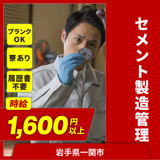 給与詳細 月収例 226,800円 時給例 1,600円 勤務地 岩手県一関市 仕事内容 セメント製造業務