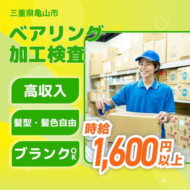 給与詳細 月収例 320,000円 時給例 1,600円 勤務地 三重県亀山市 仕事内容 ベアリング