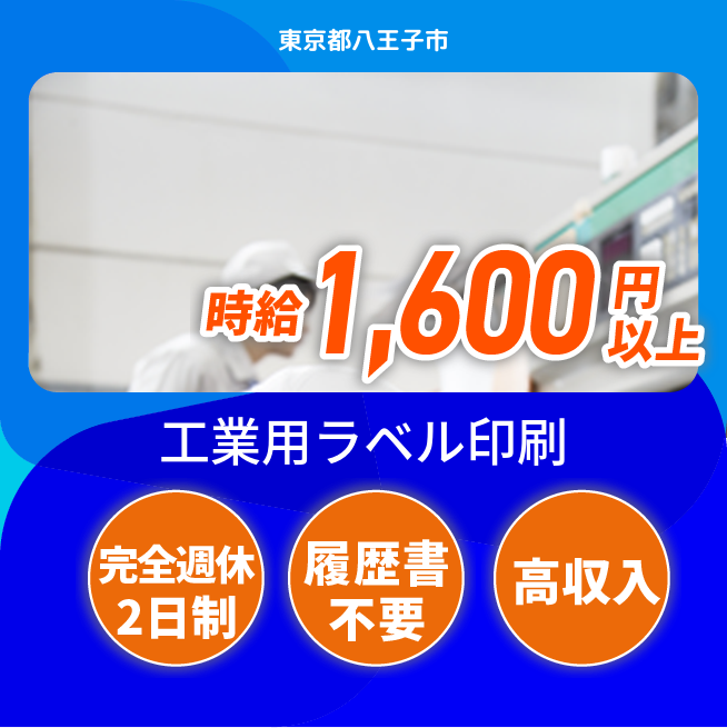 給与詳細 月収例 320,000円 時給例 1,650円 勤務地 東京都八王子市 仕事内容 工業用ラベルを製造している企業での印刷機オペレーター。専用の機械を操作してシルクスクリーン印刷をしていくお仕事です。土日祝休みで駅から徒歩3分の場所にあります。
