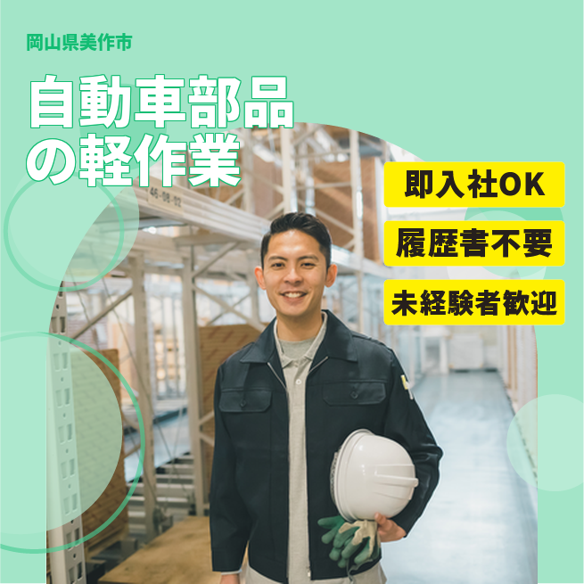 【自動車部品の軽作業】日勤のみで安心