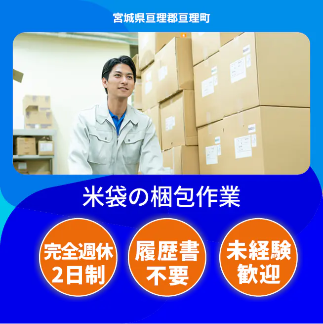 給与詳細 月収例 183,200円 時給例 1,145円 勤務地 宮城県亘理郡亘理町 仕事内容 【業務内容】米袋の製造と関連作業