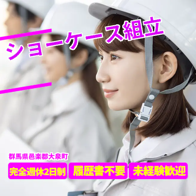 給与詳細 月収例 200,000円 日給例 10,000円 勤務地 群馬県邑楽郡大泉町 仕事内容 【業務内容】スーパーに設置する大型ショーケースの組立作業