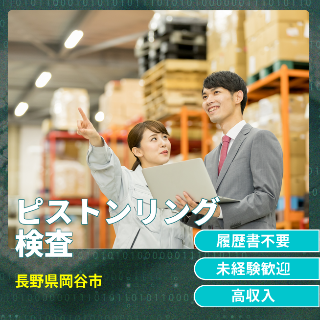 給与詳細 月収例 280,000円 日給例 14,000円 勤務地 長野県岡谷市 仕事内容 【業務内容】ピストンリングの中間検査を担当し、品質確認を行います。