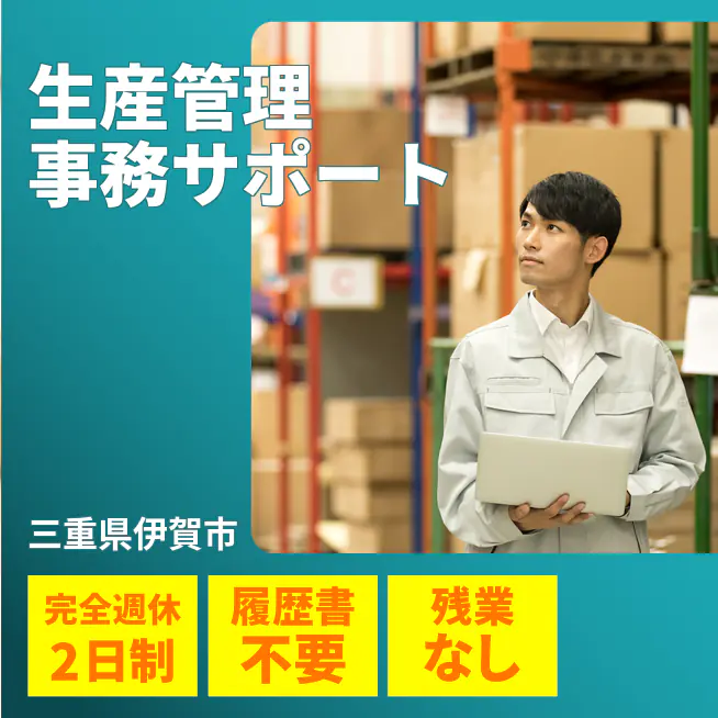 給与詳細 月収例 247,650円 日給例 10,160円 勤務地 三重県伊賀市 仕事内容 【業務内容】プラスチック製品の生産管理に関する事務作業