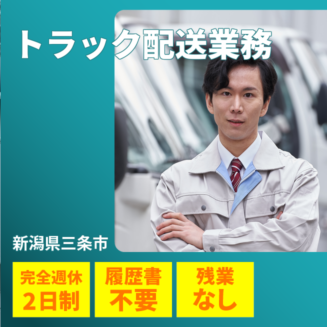 給与詳細 月収例 263,250円 日給例 10,800円 勤務地 新潟県三条市 仕事内容 【業務内容】 大型トラックの運転による県内配送業務