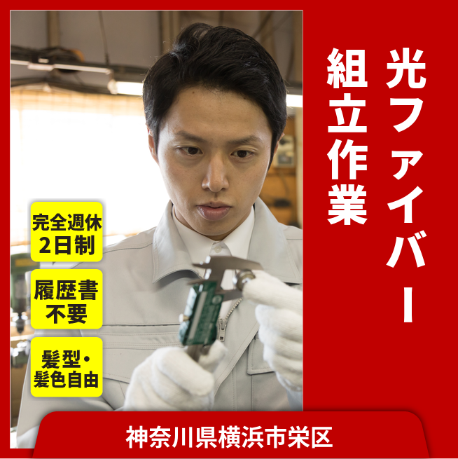 給与詳細 年収例 4,440,000円 月収例 370,000円 勤務地 神奈川県横浜市栄区 仕事内容 光ファイバー(通信ケーブル)の組立、組付け、長さ測定、検査業務。取り扱う製品によっては、クリーンルーム内での作業もあります。空調完備の室内作業となり、快適な環境です。