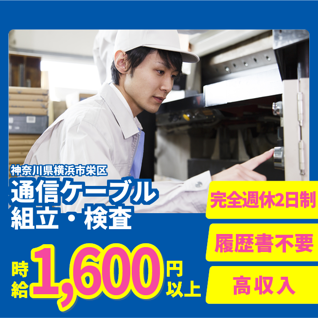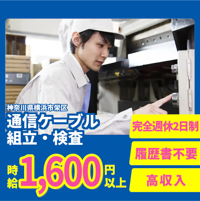 給与詳細 年収例 4,440,000円 月収例 370,000円 勤務地 神奈川県横浜市栄区 仕事内容 【業務内容】光ファイバーの組立や検査を行う仕事