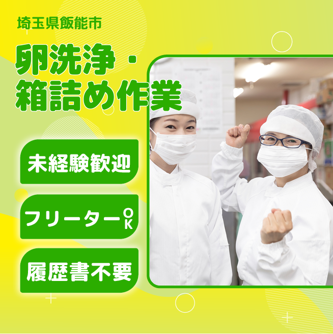 安心の昼勤務【卵洗浄・箱詰め作業】