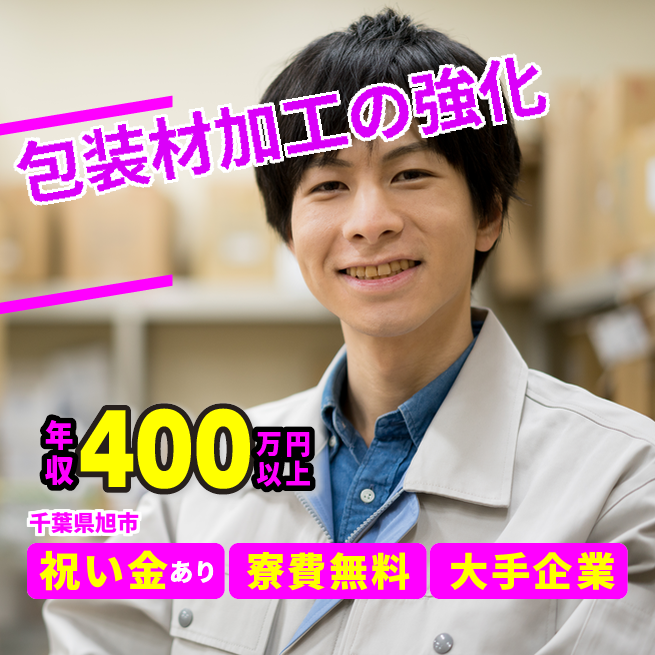 給与詳細 年収例 4,029,900円 月収例 335,825円 勤務地 千葉県旭市 仕事内容 食品用の包装材の加工工程になり前工程で印刷されたフィルムを強化する工程になります。
