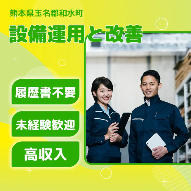 給与詳細 月収例 250,000円 日給例 12,500円 勤務地 熊本県玉名郡和水町 仕事内容 【業務内容】生産設備の運用と品質管理を担当します。