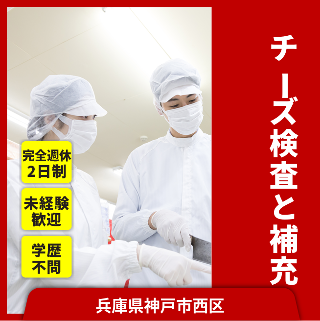 チーズの製造業務ラインから流れてくる製品の目視検査、包材の補充、不良品の確認作業