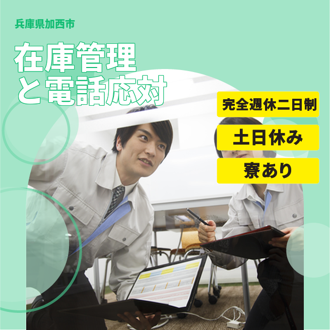 給与詳細 月収例 213,150円 日給例 11,600円 勤務地 兵庫県加西市 仕事内容 【業務内容】
