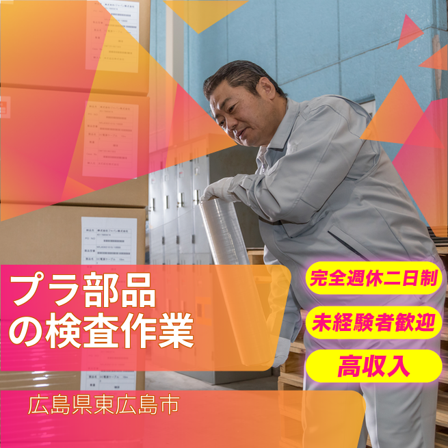 プラスチック成型品を検査し、良品を箱にいれる作業。変形やバリが無いか?など簡単にわかる検査なので初心者でも安心!