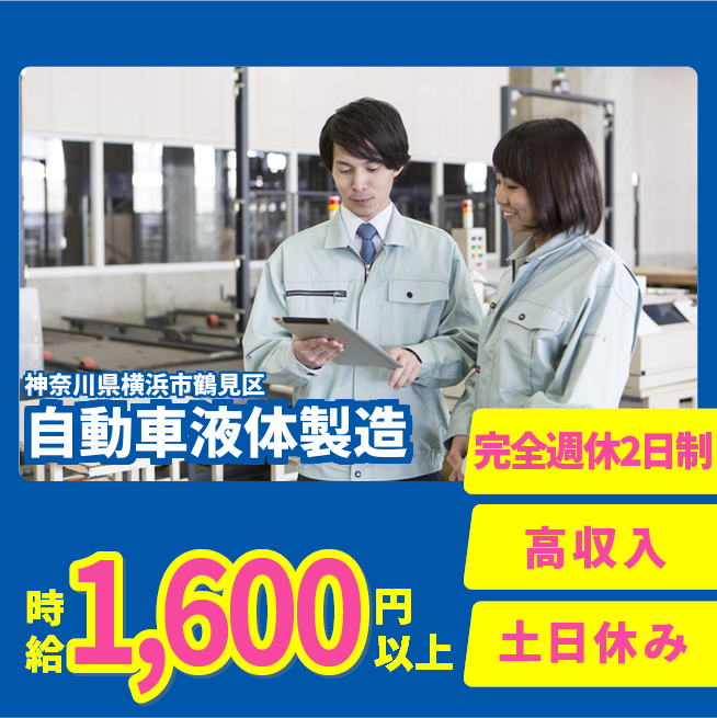 給与詳細 月収例 256,000円 時給例 1,600円 勤務地 神奈川県横浜市鶴見区 仕事内容 【職種】