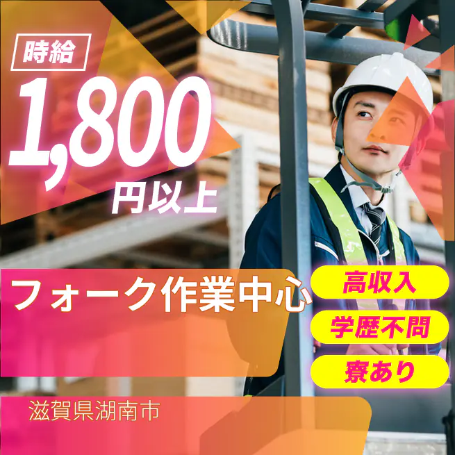 給与詳細 月収例 288,450円 時給例 1,800円 勤務地 滋賀県湖南市 仕事内容 【業務内容】