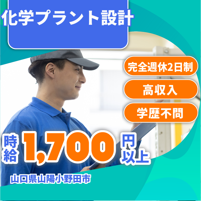給与詳細 月収例 267,750円 時給例 1,700円 勤務地 山口県山陽小野田市 仕事内容 【職種】