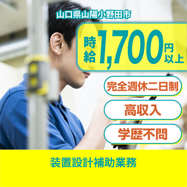給与詳細 月収例 267,750円 時給例 1,700円 勤務地 山口県山陽小野田市 仕事内容 【業務内容】