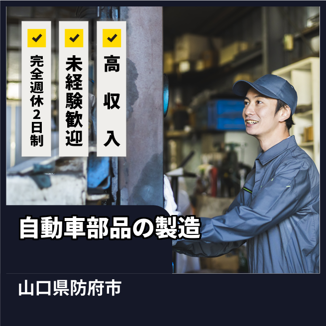 給与詳細 月収例 283,680円 日給例 12,400円 勤務地 山口県防府市 仕事内容 【職種】