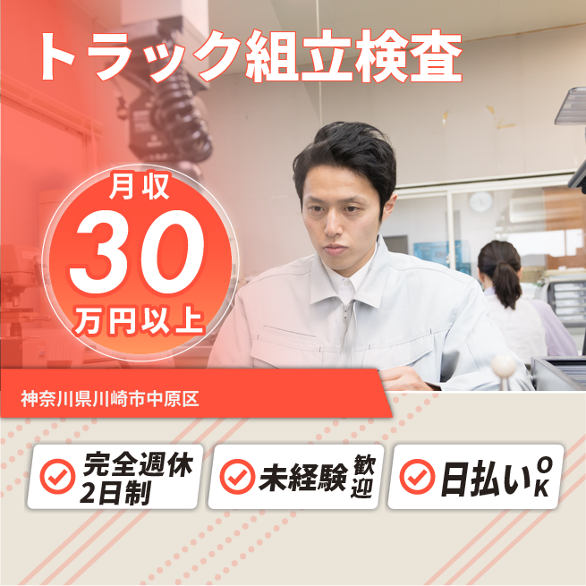 給与詳細 月収例 320,000円 時給例 2,000円 勤務地 神奈川県川崎市中原区 仕事内容 【職種】