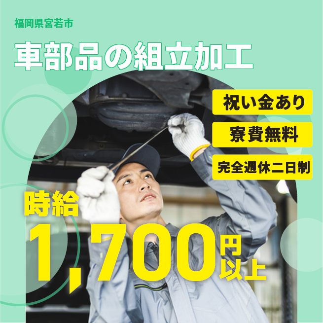 企業 トヨタ自動車九州 給与詳細 年収例 4,200,000円 月収例 350,000円 勤務地 福岡県宮若市 仕事内容 【入社祝金90万円+寮費無料or自宅通勤10万円/3ヶ月手当支給】自動車の製造に関わるお仕事です。ラインで流れてくる車体に各パーツを工具を使用して組付け等をしていただきます。組立・ボデー・塗装・物流・検査などの部署があります。