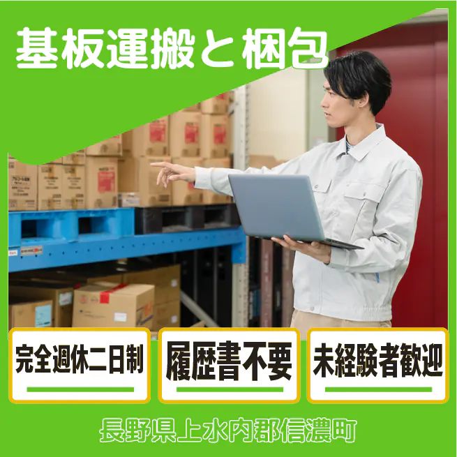 給与詳細 月収例 192,000円 時給例 1,200円 勤務地 長野県上水内郡信濃町 仕事内容 納品パレット貨物の構内運搬、製品開梱、梱包等の出庫業務、文書保存箱の入出庫業務などカンタンなお仕事です!未経験歓迎!