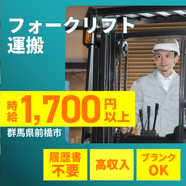 給与詳細 月収例 312,000円 時給例 1,600円 勤務地 群馬県前橋市 仕事内容 フォークリフトを使っての運搬業務