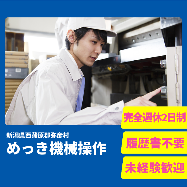 給与詳細 月収例 263,250円 日給例 10,800円 勤務地 新潟県西蒲原郡弥彦村 仕事内容 めっきを塗る機械のオペレーター