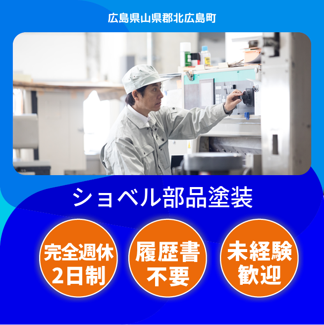 給与詳細 月収例 226,800円 日給例 11,340円 勤務地 広島県山県郡北広島町 仕事内容 カチオン完成品を上塗りラインに釣り掛け、台車移動などの、着荷・脱荷作業。