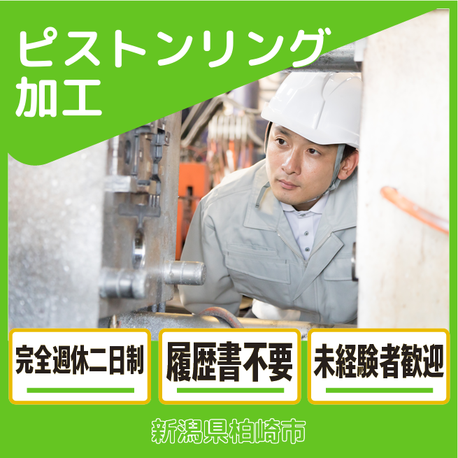 給与詳細 月収例 292,500円 日給例 12,000円 勤務地 新潟県柏崎市 仕事内容 ・ピストンリング加工補助作業・計測作業