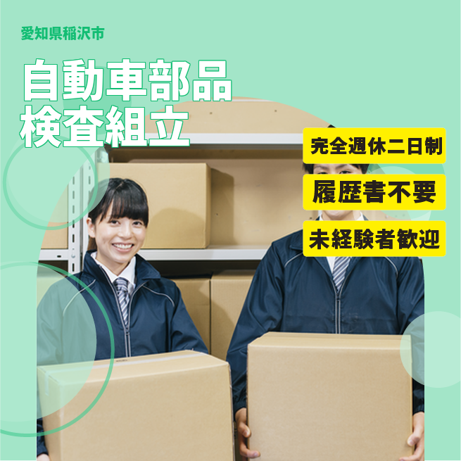 給与詳細 月収例 216,000円 日給例 10,800円 勤務地 愛知県稲沢市 仕事内容 カンタン!自動車に使われる部品の検査と組立作業!