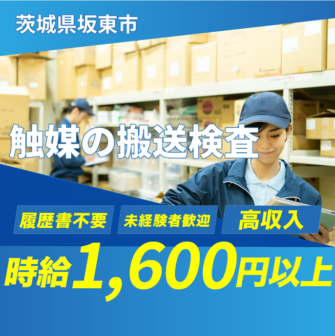 給与詳細 月収例 250,000円 時給例 1,600円 勤務地 茨城県坂東市 仕事内容 自動車に使う円柱状の触媒をダンボールから取り出し、印に沿ってベルトコンベアに乗せる業務、または加工後の触媒の回収と外観検査