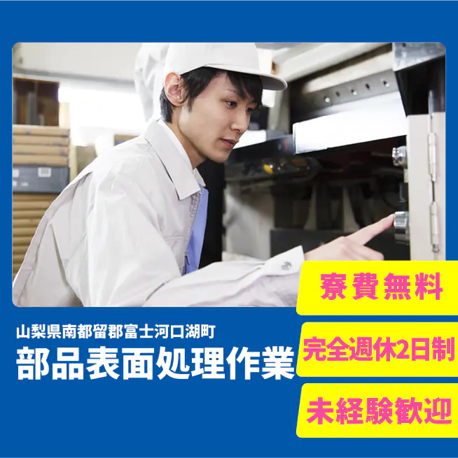 ※実際と異なるケースもございます。 交通費 支給あり 応募の流れ 本ページ内<応募する>ボタンより、必要項目をご入力の上、ご応募ください。 勤務地 【勤務地】山梨県南都留郡富士河口湖町船津 勤務時間 【勤務地】①08:30~17:30 休憩60分