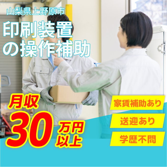 給与詳細 月収例 306,000円 日給例 11,600円 勤務地 山梨県上野原市 仕事内容 【印刷装置操作補助及び付随業務】