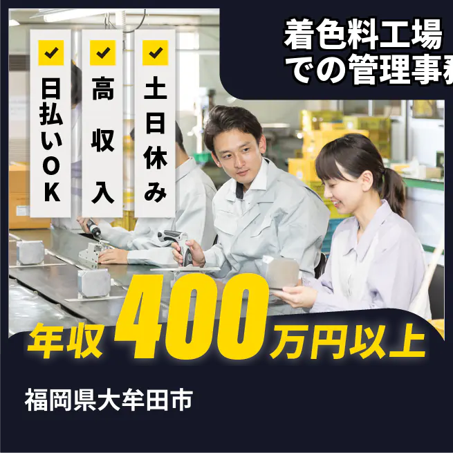 給与詳細 年収例 4,080,000円 月収例 340,000円 勤務地 福岡県大牟田市 仕事内容 【英語が活かせる管理事務】