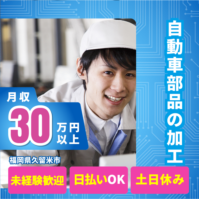 給与詳細 年収例 4,080,000円 月収例 340,000円 勤務地 福岡県久留米市 仕事内容 【自動車部品の加工】