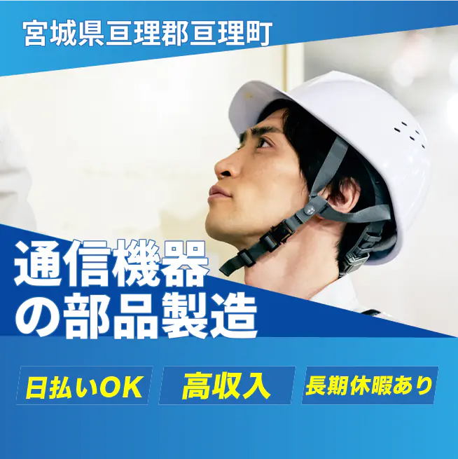 給与詳細 月収例 260,000円 日給例 11,200円 勤務地 宮城県亘理郡亘理町 仕事内容 【通信機器の部品製造】