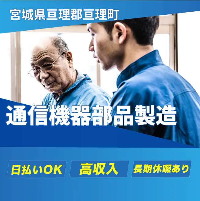 ◆日払い・仮払いOK(アプリでカンタン申請!) 交通費 支給あり 応募の流れ 本ページ内<応募する>ボタンより、必要項目をご入力の上、ご応募ください。 勤務地 【勤務地】宮城県亘理郡亘理町逢隈田沢 勤務時間 【勤務地】8:30~17:00(休憩45分)