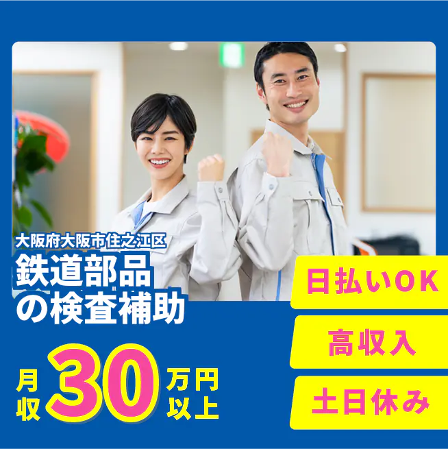◆日払い・仮払いOK(アプリでカンタン申請!) 交通費 支給あり 応募の流れ 本ページ内<応募する>ボタンより、必要項目をご入力の上、ご応募ください。 勤務地 【勤務地】大阪府大阪市住之江区南港東 勤務時間 【勤務地】8:30~17:15(休憩60分)