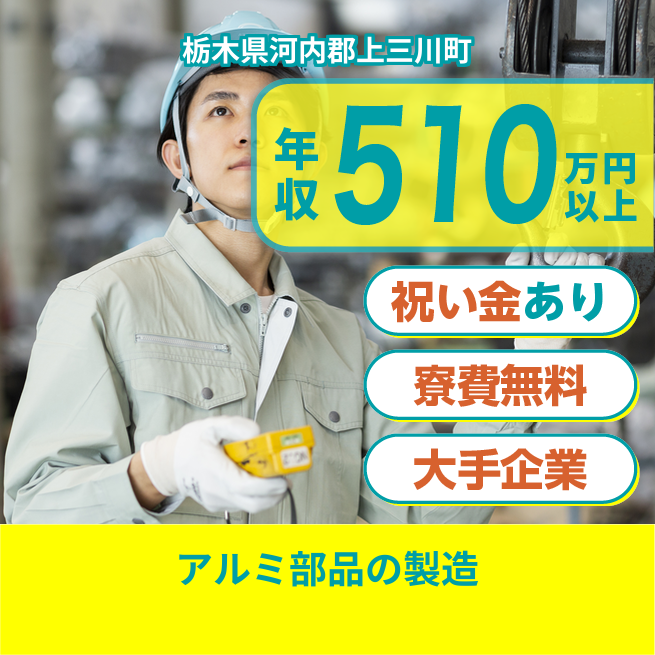 ※通常62,000円の寮費が就業期間中無料! 【アルミ部品作り】
