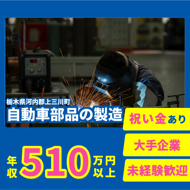 給与詳細 年収例 5,400,000円 月収例 450,000円 勤務地 栃木県河内郡上三川町 仕事内容 【自動車アルミ部品の製造】
