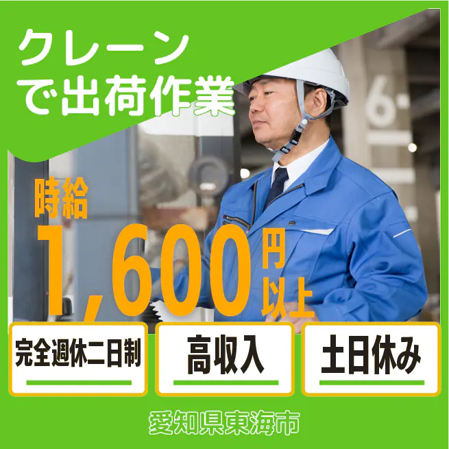 ※各規定あり 交通費 支給なし 応募の流れ 本ページ内<応募する>ボタンより、必要項目をご入力の上、ご応募ください。 勤務地 【勤務地】愛知県東海市- 勤務時間 【勤務地】(日勤)8:00~17:00