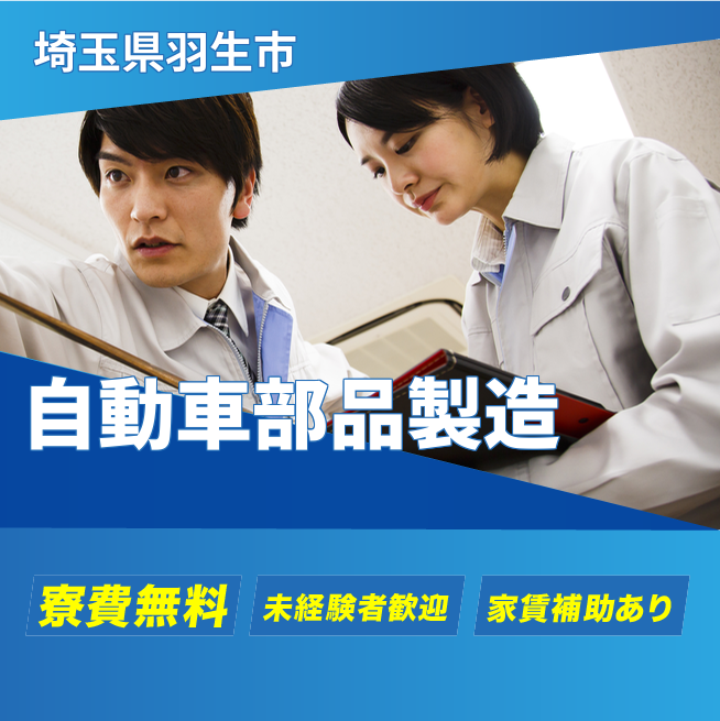 給与詳細 月収例 276,726円 日給例 11,250円 勤務地 埼玉県羽生市 仕事内容 ボールねじ(自動ブレーキ装置に使われる部品)やベアリング(自動車のエンジンやブレーキに使われる部品)の製造業務になります。