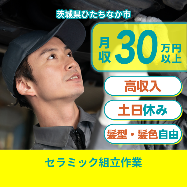 給与詳細 月収例 332,696円 日給例 12,000円 勤務地 茨城県ひたちなか市 仕事内容 指示書を確認しセラミックス製品を手作業で組み立てます。
