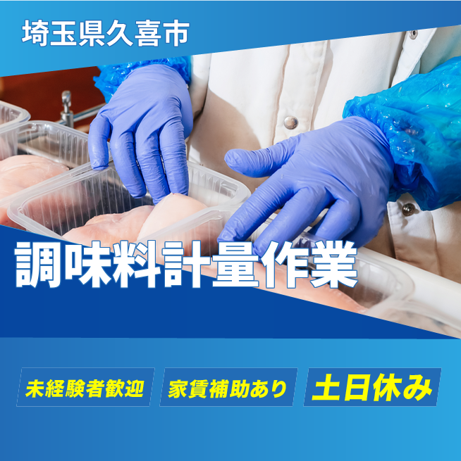 給与詳細 月収例 200,000円 日給例 10,000円 勤務地 埼玉県久喜市 仕事内容 【業務内容】