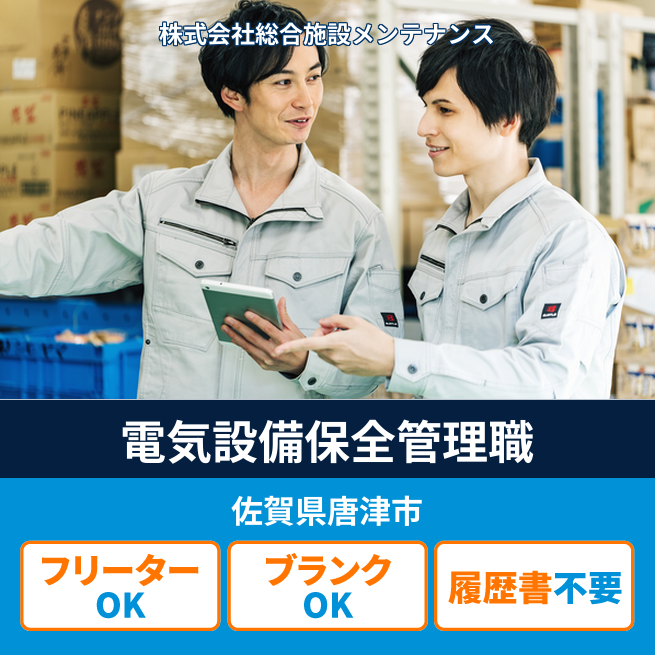 企業 株式会社総合施設メンテナンス 給与詳細 月収例 160,000円 時給例 1,000円 勤務地 佐賀県唐津市 仕事内容 「電気設備や空調関連の保守管理経験をもっと活かしたい?」