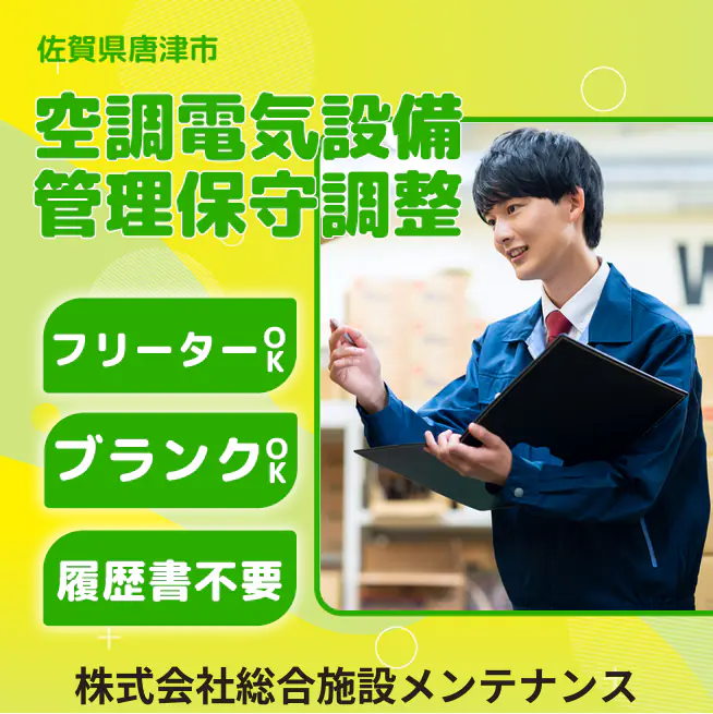 企業 株式会社総合施設メンテナンス 給与詳細 月収例 160,000円 時給例 1,000円 勤務地 佐賀県唐津市 仕事内容 変電装置など電気設備の点検・保守をご担当いただきます。