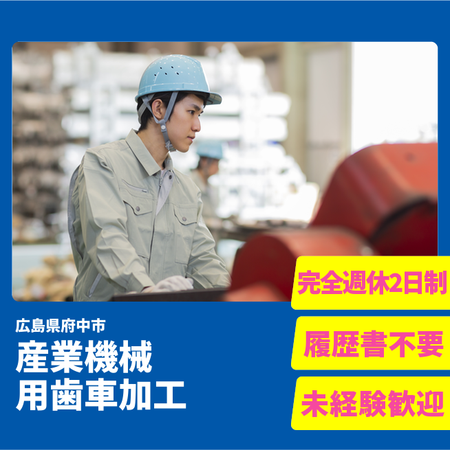 給与詳細 月収例 16,800円 時給例 1,200円 勤務地 広島県府中市 仕事内容 【業務内容】歯車製造に関わる機械オペレーターとしての業務