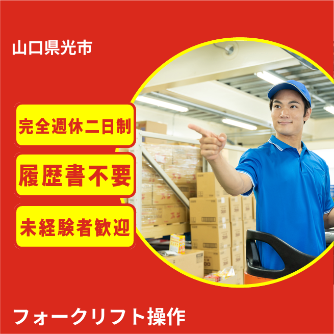 給与詳細 年収例 4,080,000円 月収例 340,000円 勤務地 山口県光市 仕事内容 【業務内容】自動車部品の供給とフォークリフトを使用した作業を担当します。
