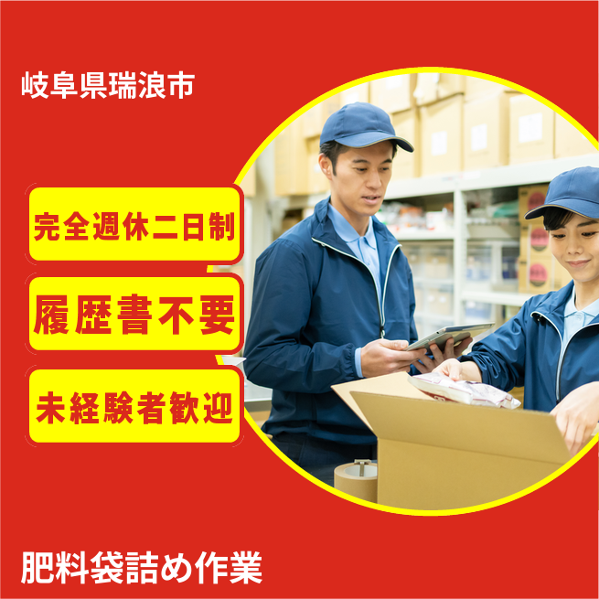 給与詳細 月収例 240,000円 日給例 12,000円 勤務地 岐阜県瑞浪市 仕事内容 【業務内容】肥料の製造と取り扱いに関する作業